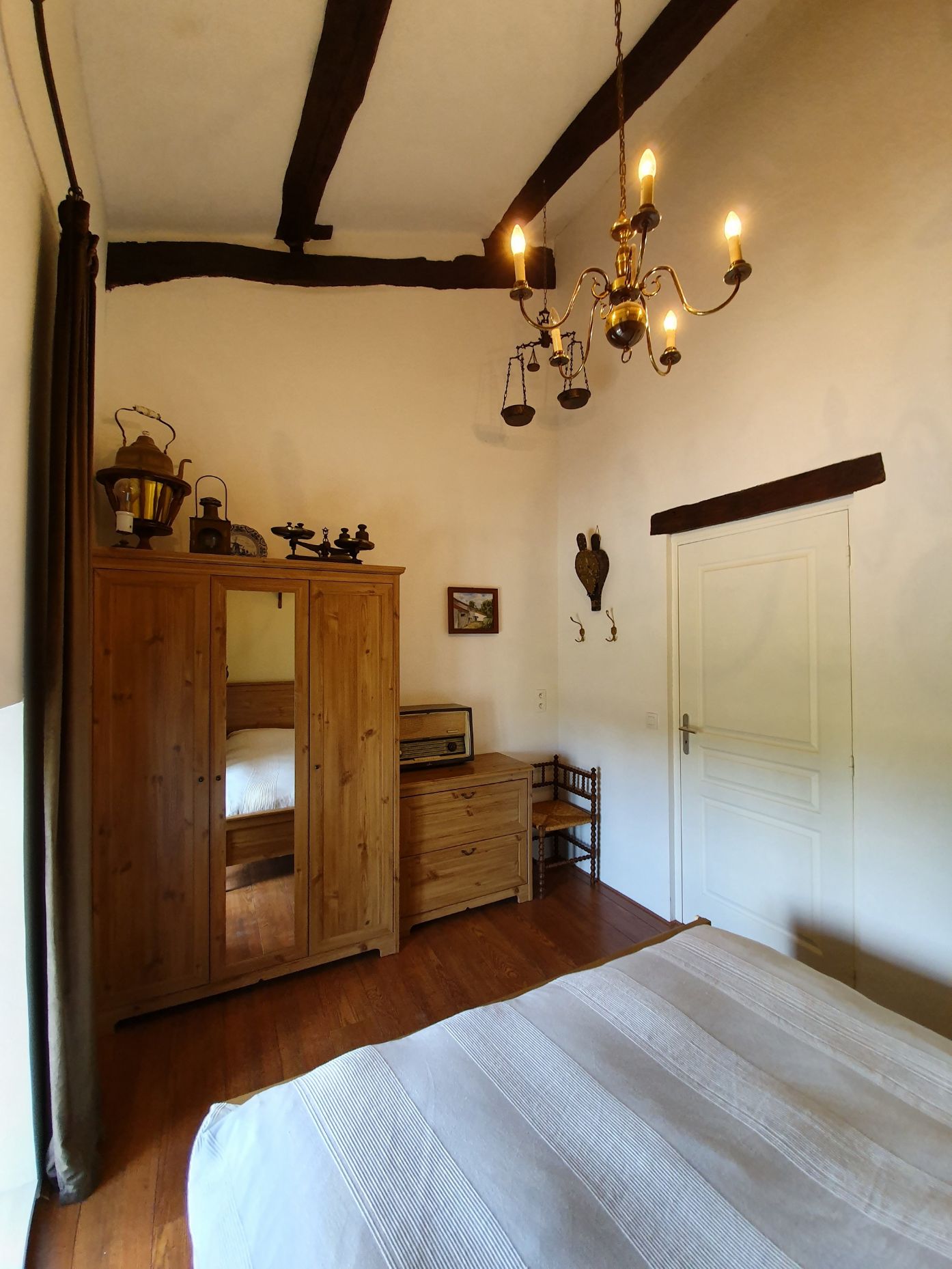 De “Historique” is een 2-persoons slaapkamer met een 2-persoonsbed (2x80/200) aan de voorkant van het huis. Er staat een garderobe- en een ladekast. Deze kamer is een museum geworden van alle oudheden die Leo’s ouders, de vorige eigenaren, destijds in het huis verzameld hebben. Je waant je hier, ondanks al het comfort, in de tijdssferen van je grootouders of overgrootouders.