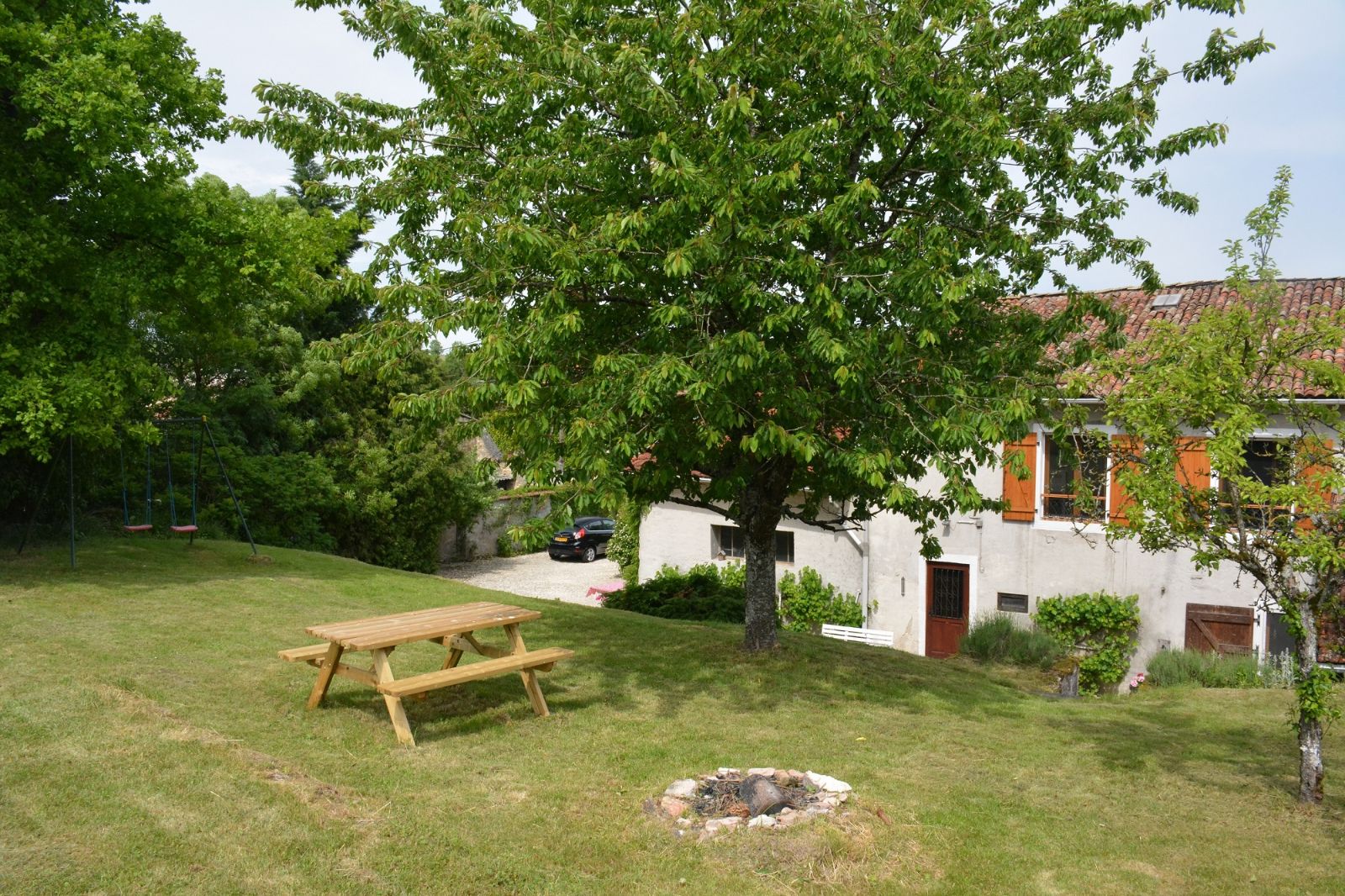 Vanuit de achterdeur kom je op de cour (binnenplaats) en de grote, groene tuin (3000 m2). Auto’s kunnen eventueel door de houten poort vanaf de straat de cour oprijden en hier worden geparkeerd. De cour is voorzien van divers tuinmeubilair en heeft als blikvanger een eeuwenoude waterput. Deze waterput is 4 meter diep en derhalve uit veiligheid afgesloten met een deksel. Het hoekje op de cour bij de waterput is idyllisch en behaaglijk want hier komt bijna geen wind. Je kan hier op het bankje ook op een wat frissere dag al snel van het zonnetje genieten. Daarnaast leent de cour zich prima voor een ouderwetse Frans potje jeu de boules (petanque).