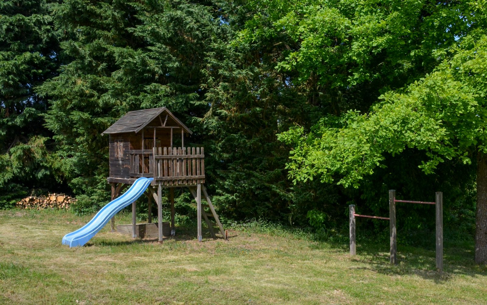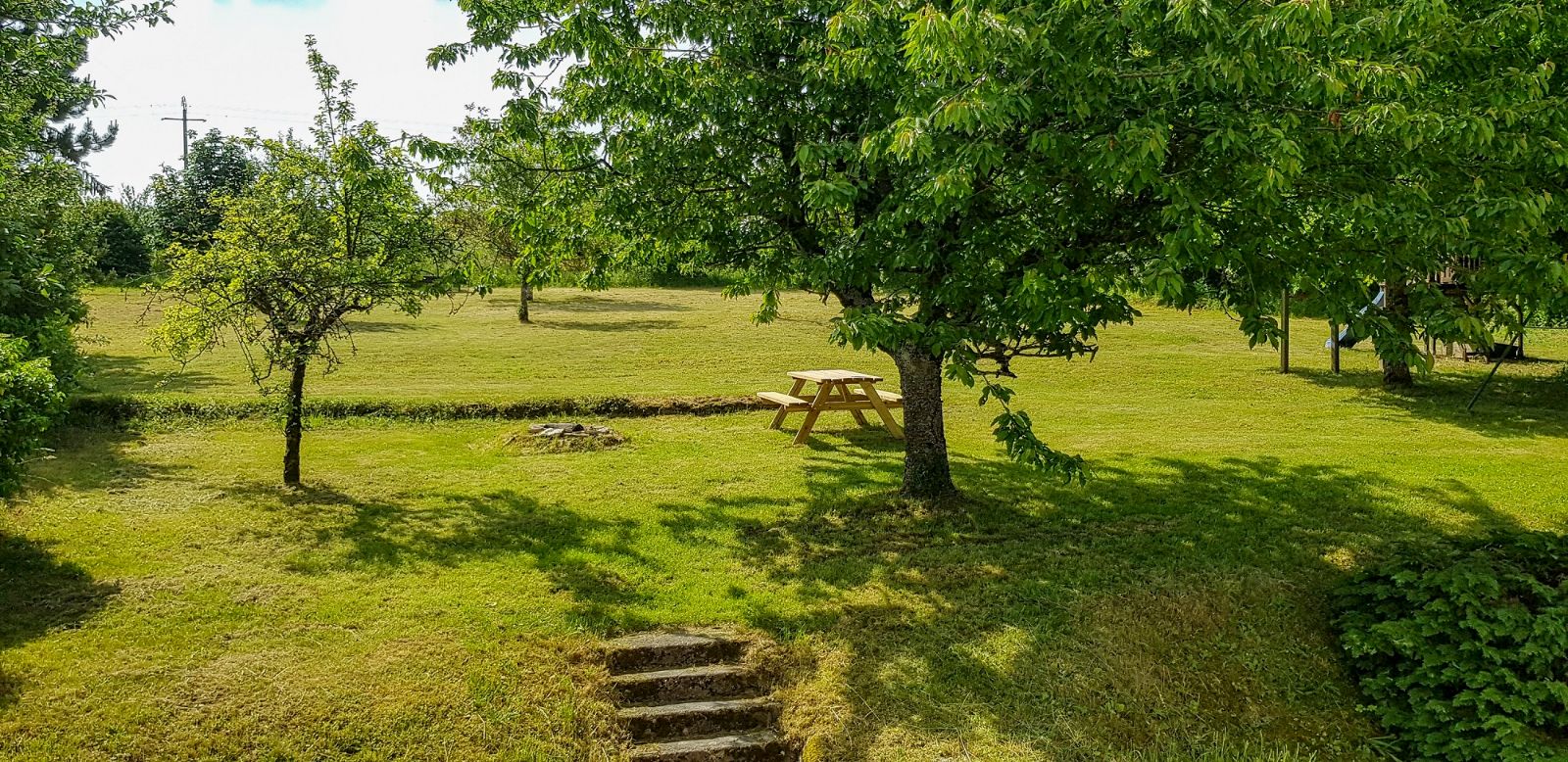 Met behulp van een stenen trap kom je vanaf de cour op het hoger gelegen, vrij liggende achterland, voorzien van gras en (fruit)bomen. Op een warme zonnige dag geven deze bomen veel schaduw en is het een aangename plek voor siësta of het lezen van een boek. Naast de picknicktafel is een vuurplaats waar ‘s avonds onder de immense sterrenhemel een gezellig kampvuurtje gemaakt kan worden. In Rupt is het ‘s avonds nog echt donker, en dat levert een adembenemende sterrenhemel op. De grote en kleine beer, de Melkweg, satellieten en vallende sterren zijn vanaf deze plek bij helder weer heel goed te zien. De achtertuin is afgesloten, waardoor kinderen hier veilig kunnen spelen. Voor kinderen zijn er diverse voorzieningen, zoals 2 schommels, een dubbele rekstok, een zandbak en een houten speelhut met glijbaan. ’s Avonds is het voor ieder kind een feest om marshmallows te roosteren op een stok boven het kampvuur. Zowel op de cour als op het achterland kan gebarbecued worden.